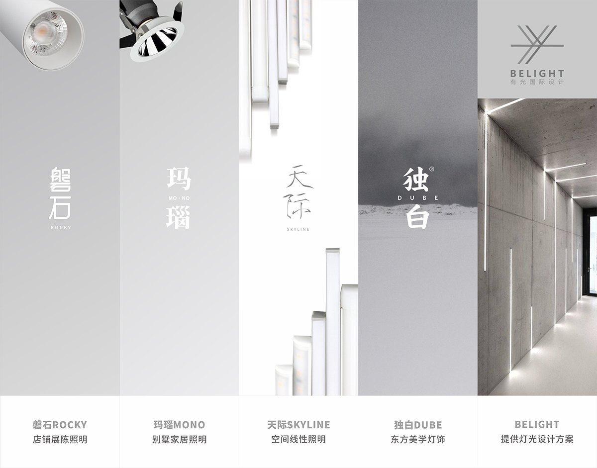 “神话”品牌下辖四个清晰的,相辅相成的子品牌系列,均定位中高端LED差异化定制照明。同时拥有一个独立的灯光设计事业部